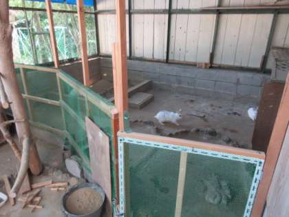 今,ウサギ小屋の中を,2つの部屋に分けられるように,用務員さんが柵を作ってくださっています。