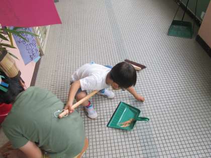 自分から「教えて」と掃除の仕方を聞いて,がんばってやっています。