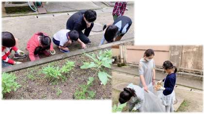 その代わりに,「クリーン大作戦」と名付けた清掃活動を計画しています。曜日ごと,学年ごとに,普段は掃除の分担場所ではない中庭や運動場の周辺の草引きやゴミ拾いをします。
