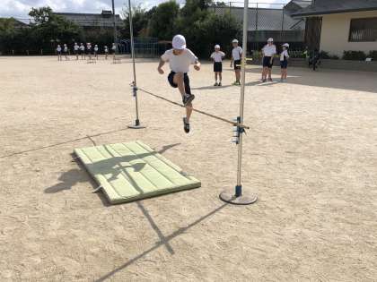 体育は走り高跳びに取り組んでいます。助走・ふみきり・空中動作での工夫を意識しています。最高記録を目指して頑張ります。
