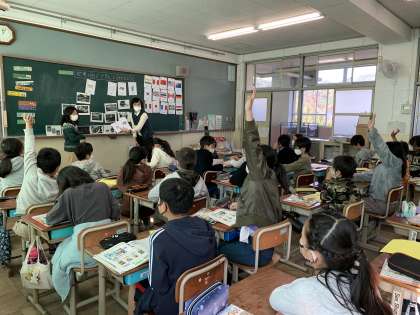 外国語の学習を進めています。今は様々な国の名前を英語で言ったり,紹介したりしています。この学習を通じて,英語はもちろん,外国のことについても興味をもってくれると嬉しいです。