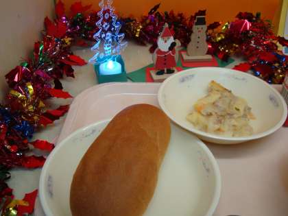 12月8日(火)の献立は,ミルクコッペパン,牛乳,ペンネの豆乳グラタン,野菜のスープ煮でした。ペンネの豆乳グラタンは,スチームコンベクションオーブンで調理しました。