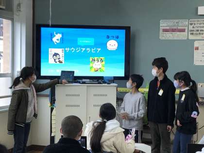 世界には日本とつながりの深い国があります。その中で,アメリカ合衆国,サウジアラビア,大韓民国,中華人民共和国について調べ発表会をしました。個人用パソコンを使いグループごとにまとめ発表しました。グループごとによく調べられていていました。