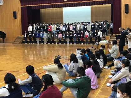 3・4校時,6年生を送る会を行いました。今年は,感染症予防のため,5,6年生と星の子学級が体育館で集まり,それ以外の学年はzoomを通じて教室から参加しました。