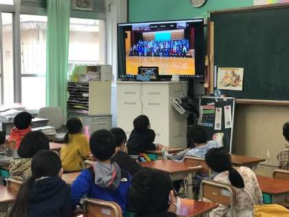 これまでお世話になった6年生への感謝の気持ちをこめて,星の子学級,2年生,4年生,5年生は出し物をしたり,お祝いの気持ちを込めたメッセージを作成したりしました。1年生,3年生は心のこもったプレゼントを用意しました。場所は離れていますが,それぞれの学年の一生懸命な姿に,6年生をお祝いする気持ちが伝わってきました。