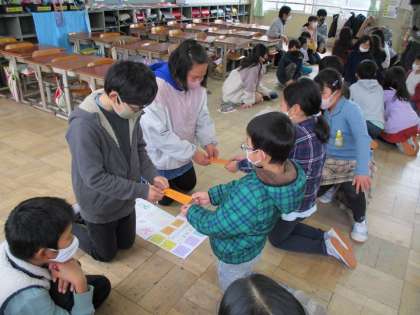 その後,昼休みには,たてわり活動も行いました。1年間お世話になった6年生に自分たちの手で直接プレゼントを渡していました。6年生も嬉しそうにずっと眺めたり,お礼を伝えたりしていました。今年度は感染症予防のため,たてわり活動を行う回数も少なかったですが,下級生にとっては6年生が憧れの対象となっていたようです。6年生にとっては,残り7日間。6年生の姿が,伝統としてつながっていくことを願っています。