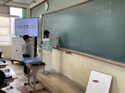 本格的に算数の授業がスタートしました。今日は「10倍すると…」「1/10すると…」という学習をし,小数点の移動について調べました。全体を見渡してもよく理解できたようで,良いスタートが切れました。この調子で1年間頑張り続けてほしいと思います。