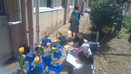 それぞれが気に入ったお花を選び,よく観察してスケッチをしました。