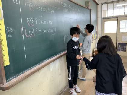 整数と小数の学習を進めています。少しずつ小数点の移動にも慣れてきたようで,すらすらと解く姿が見られました。どんどん手もあがり,活発な雰囲気が素晴らしかったです。この調子で来週も頑張りましょう!!