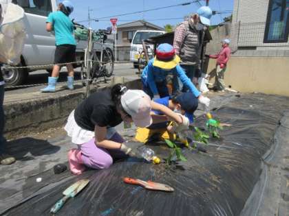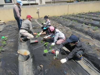 明徳農園に着くと,畑の先生方が朝早くから準備をして待ってくださっていました。ご挨拶をして,植え方を聞いて,みんな真剣な顔で優しく植えました。最後には水やりもしました。たくさん収穫できるように,大切に育てていこうと思います。