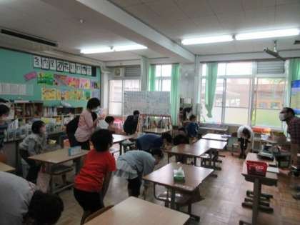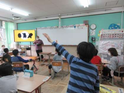 どっちが大きい?のゲームは大盛り上がり!!最後は英語の歌に合わせて身体を動かしました。