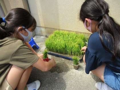 苗のプレゼントです。「さあ!お米作りにチャレンジしてごらん。」とたくさんの苗をいただきました。うまくいくか心配・・・と悩んでいるならチャレンジ!先生も初めてですが,おうちでやってみたいと思います。育て方プリントは5年生に配布しましたが,興味のある明徳っ子は5年の先生に今週中に声をかけてください。
