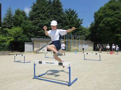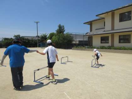4年生の体育の授業でハードルを経験したり,跳んでいるのを見たりして,ハードルに興味をもった子どもたち。そこで,星の子学級でも,ハードルに挑戦しました。ハードルをまたいで越す子,跳んで越す子,リズミカルに跳ぶことに挑戦する子と,それぞれの目標に向かって頑張っています。