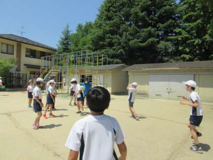 後半は,「中あて」をしています。だんだんルールが分かってきて,みんなで楽しんでいます。当てることができたら大喜びです。