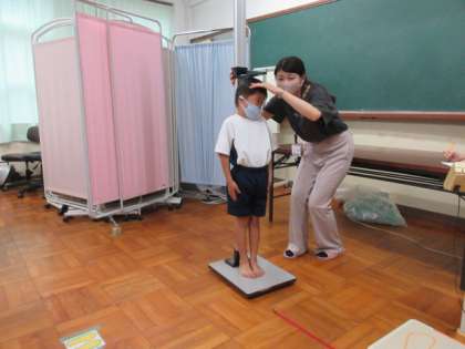 4月以来5か月ぶりに,身長と体重をはかりました。身長計も体重計もウキウキしながら乗って,保健室の先生に測ってもらいました。「ぼく○○センチ伸びたぁ」「わたしは○○センチ超えたぁ」と嬉しそうな星の子の子どもたちでした。