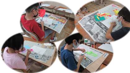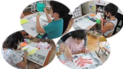 図工の時間に,ハサミを使って色紙を細かく切り,木に色とりどりの花を咲かせる活動をしました。子どもたちは,ハサミの使い方が少しずつ上手になってきました。今日は,改めて,ハサミの扱い方も確認しました。子どもたちは,安全に気をつけながら作品作りを楽しんでいました。