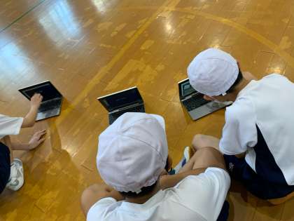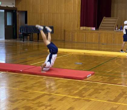 5年生の体育では,マット運動に取り組んできました。今までに技のポイントを意識して動画を撮影し課題点を見つけたり,友達とアドバイスを送り合ったりときれいなフォームで技ができるように練習してきました。そして,本日発表会を行いました。練習で意識したポイントを振り返りながら一生懸命披露することができました。