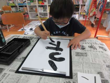 今日は,書写の学習をしました。星の子学級では,全員同じ文字を書くのではなく,自分の習った文字の中から,先生と一緒に書く文字を決めて,それぞれ違う文字を書きます。みんな,書写の時間が大好きで,意欲的に取り組んでいます。