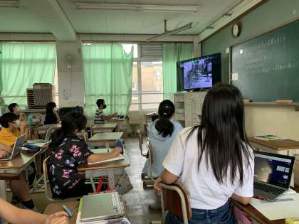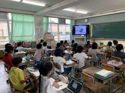 社会科の学習では動画を見ることがあります。今日は休んだ子もzoomで学習に参加していたので,画面共有の機能を活用し,教室でも家でも,同じタイミングで動画を見て学習することができました。画面共有機能のおかげで,離れていても心がつながっている感覚がありました。いろいろな機能を試しつつ,より良い形を模索していきたいと思います。