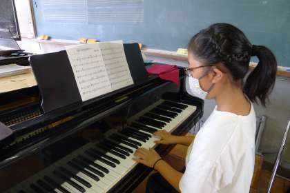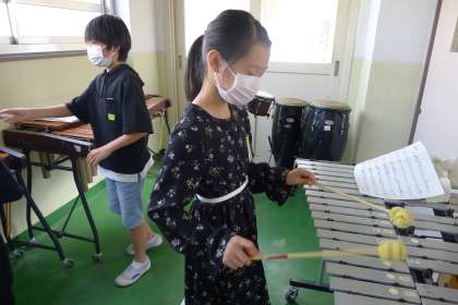 学習発表会に向けて少しずつ練習を始めています。例年のように練習が進められない中ですが,最後まで早くできるようになりたい!もっと練習をしたい!と休み時間にも自主的に練習をしに来る子がいます。自主練習に来る子たちがどんどん上達し,合奏練習を引っ張ってくれています。