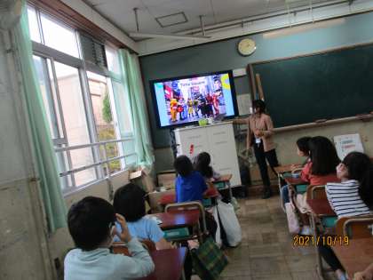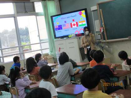 ガリーバ先生がどこの国の出身か,何の動物が好きなのかなど,自己紹介を交えながらたくさん話をしてくれました。