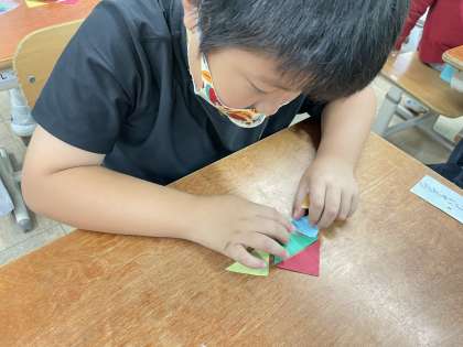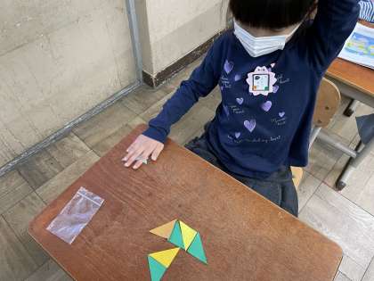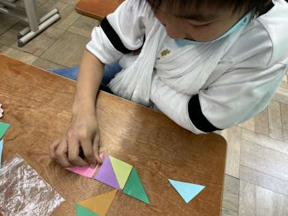 子どもたちは色紙の並べ方を考え,様々な形づくりをしました。