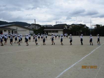 学年でスポーツフェスタに向けて練習をしました。演技の始まる前から集中して,「かっこいい2年生」になろうと一人ひとりが,一生懸命取り組んでいました。