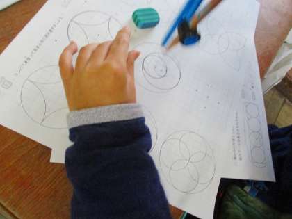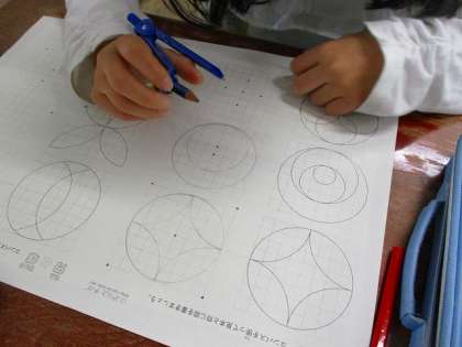 模様の中の大小さまざまな円や円の一部を見つけて,コンパスを使うのがポイントですね。これからも頑張っていきましょう。