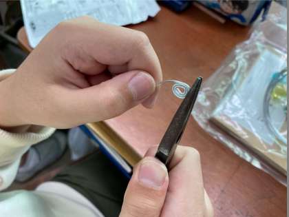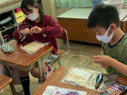 今週から,図画工作科でワイヤーアートの学習に入りました。5年生で初めて扱う針金やペンチを使って立体作品を作り上げていきます。立ち上げるにはどうすればよいのかを色々と試しながら,おもしろい形をたくさん見つけてくれています。また,ラジオペンチとペンチの使い分けも考えて,用具を安全に使う練習もしています。完成が楽しみです。