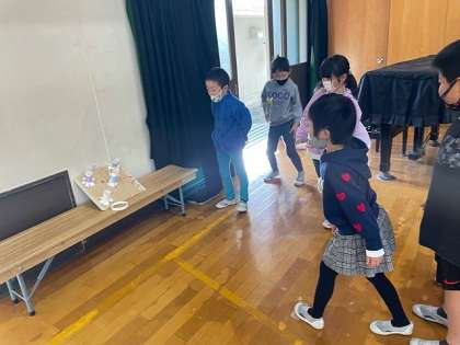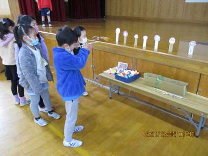「これだと壊れちゃったからこうしようかな。」「こうしたほうが面白そう。」とこれまでにグループでたくさん話し合って,頑張って作ってきたおもちゃ。今日は,1年生を招待して一緒に遊びました。