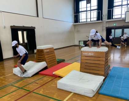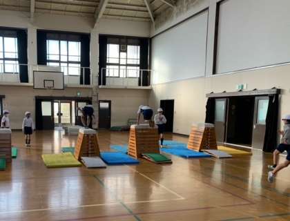 体育では,とびばこ運動の学習がはじまりました。今できる技で,違う高さのとびばこに挑戦すること,少しがんばればできそうな技に挑戦することをねらいとして取り組んでいます。新しい技にどんどん挑戦し,友達とも教え合いながら学習しています。また,授業のはじめに一人一人目標を決めているため,目標を達成するための工夫を考えながら取り組んでいきたいと思います。