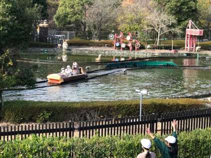 「明日多夢」あすたむらんど徳島の冒険の国ゾーン,子ども科学館ゾーン,吉野川めぐりゾーンで、班ごとに活動しています。歓声や悲鳴を上げながらあすたむらんどの一日を満喫しています。
