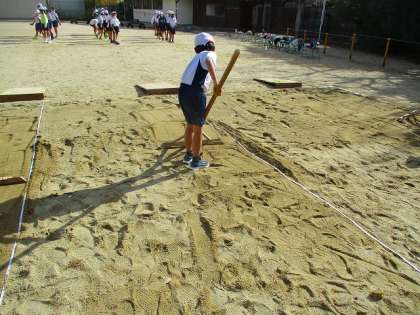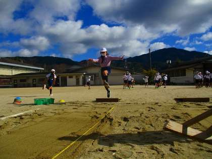 どうやったら遠くまで跳べるようになるのか,どんなことを意識してやるとよいのか考えながら記録更新にむかって取り組んでいきましょう。
