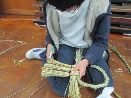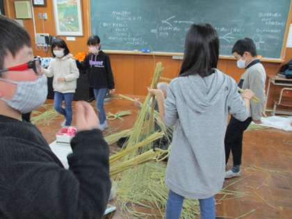 今日は個人懇談会があるので14時半からのスタートだったしめ縄部。ゆっくりじっくり作業する時間があると,「やり直してみよ。」「できたから教えるね。」と,いつもより余裕をもってできました。畑の先生,本日もお世話になりました。完成した人は終了!ですが,明後日のしめ縄部の最後の活動日で全員完成できるよう,ミニ先生になってほしいです。よろしくね!!