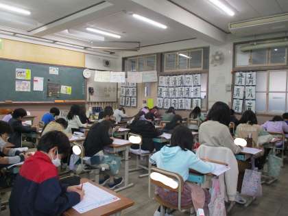 3年生は、1年間で新たに200もの漢字を学習し、今日はその中の50問漢字テストを行いました。