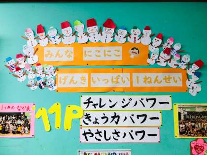 ちなみに,1年生の学年目標は「みんな にこにこ げんき いっぱい 1ねんせい」。そして,1年1組の合言葉は,「1・1・P!」です。これは,「1年1組パワー」という意味です。そこで,出た意見の中から,大切にしていきたい3つのパワーを決めました。