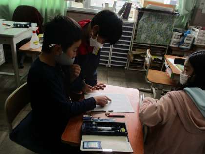 これまでの、各月のあじなす目標を振り返るとともに、自分たちに足りないものや、もっとできそうなことについてタブレットを使って意見をまとめながら交流をしました。