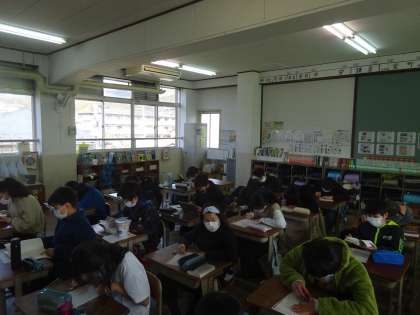 掃除が終わり,5時間目開始までの時間は算数タイムという帯時間の取組をしています。