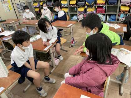 「自分だったら」と立場をはっきりさせ,どうしてなのかを考えると,「自分とは違う考えがあって面白かったです。」「友達の考えを聞いて,もっとよく考えることができました。」と,友達と意見を伝え合うことで考えを深める姿が見られました。