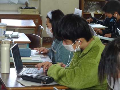 外国語の時間は,リモート先の先生から指導の下,他のクラスの友達とリモートで交流を行いました。