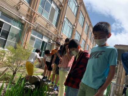 理科の学習では,学校にある春を探しにいきました。たくさんの生物にふれることができました。