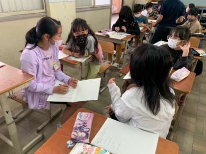国語では,友達との共通点をたくさん見つけました。たくさんの質問をして,友達の新たな一面を知ることができました。これから一年,みんなで楽しく学習していきたいと思います。