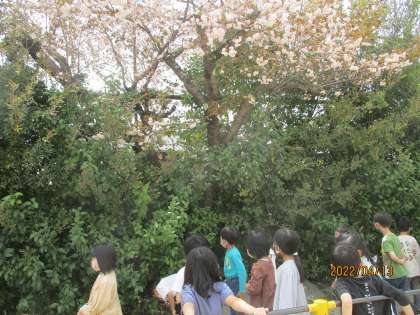 図画工作科「おはなみスケッチ」の学習で,春見つけをしました。