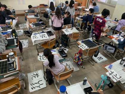 「はらい」,「とめ」,「はね」「線の太さ」など「花」という文字を書くためにもたくさんの工夫を意識して取り組むことができました。