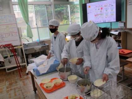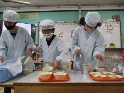 今年度からは,子供たちにも給食をよそってもらっています。どれだけの量を入れるべきなのか,おいしい給食をみんなで完食するために一人一人が考えて配膳を進めています。
