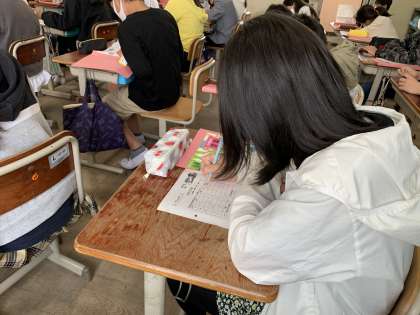 今日の音楽の授業は教室で行いました。pやfなどの強弱記号の復習やテンポの学習をしました。実際にメトロノームを見てテンポの確認をしたり,口ずさんだりしながら学習しました。学習したことを生かしてリコーダーを吹いたり歌ったりできるようになってくれることを期待しています。