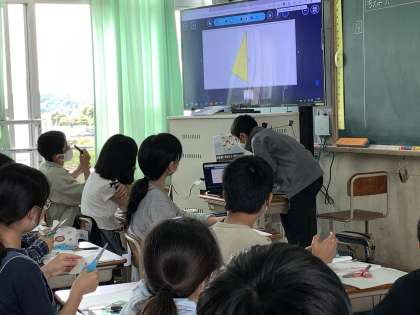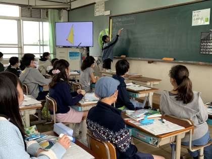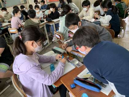 今日は点対称な図形をかき方を考えました。点対称な図形の性質を理解して使いこなせるかどうかが問われました。線対称な図形と違い,上下左右が反対になることに難しさを感じていたようですが,グループで話し合うことでなんとか解決に向かうことができていました。