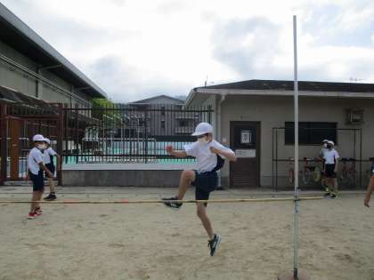 体育で走り高跳びの学習を始めました。4年生の時に取り組んで以来2年ぶりです。