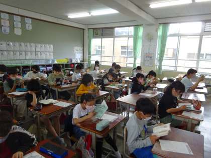問題は3つだけなので「簡単やわ〜」という声も聞こえてきます。確かに,みんな満点で,早々に終えて読書をしていました。でも,ここから確実にステップアップしていきたいと思います。