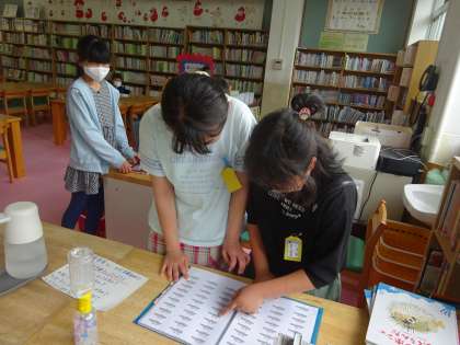 図書員の5年生も,貸出の当番を忘れず頑張っていました。